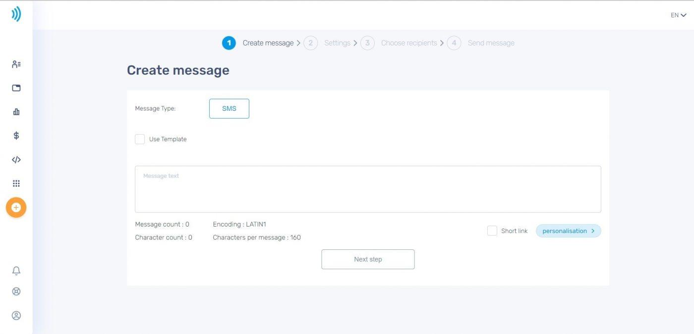 When you enter into your personal account the « Create message » tab from the left menu is opened by default.