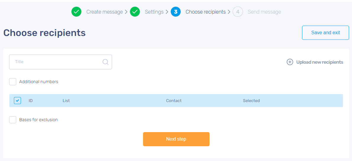 We remind you that you can exclude certain numbers from sending using “Exclusion list” in “Create Message” section (see p. 2.5.2).