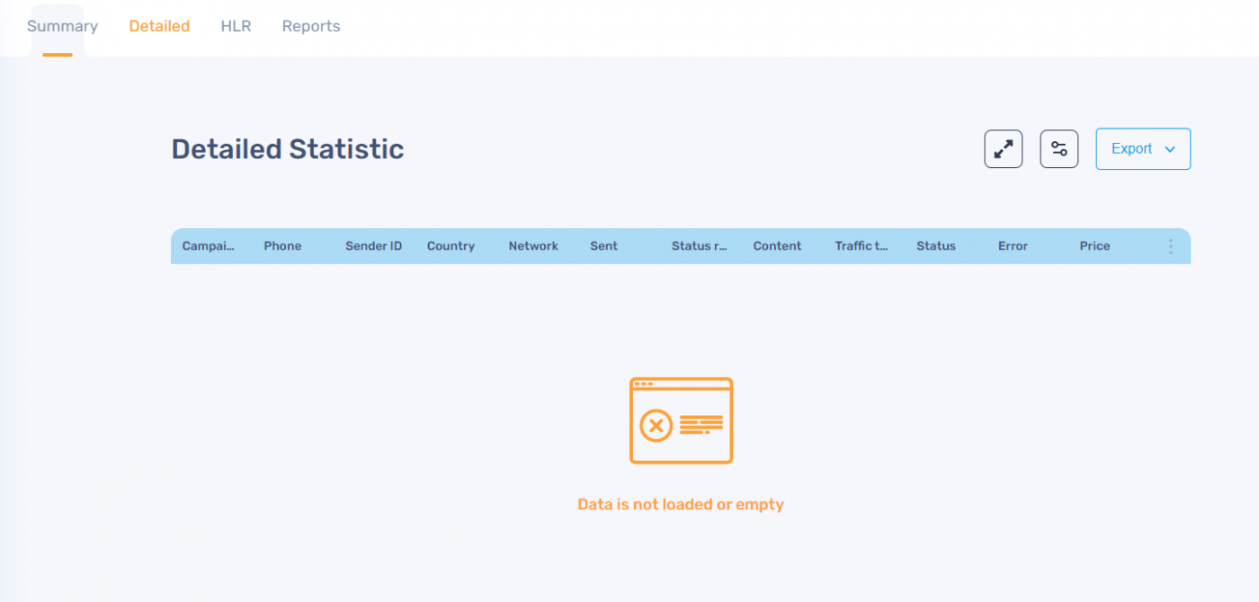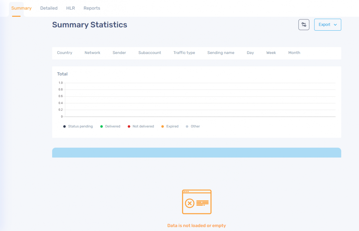 Please note that after sending SMS messages the data can be loaded to the “Statistics” section in a few minutes.