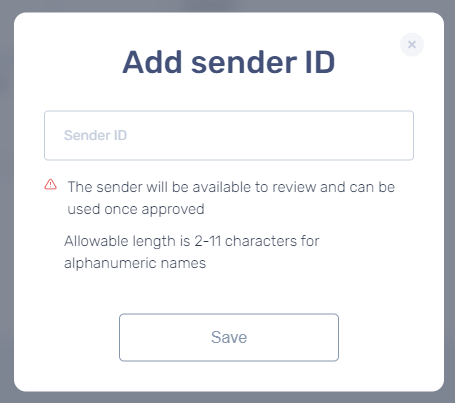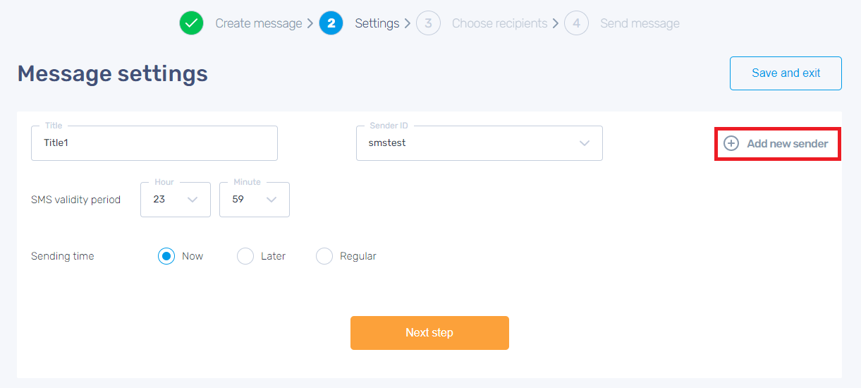 Then enter the sender name in the appeared window. After that the sender name will be in moderation during 2-10 minutes in business days. Accordingly, the prime status of the sender is “in moderation”.